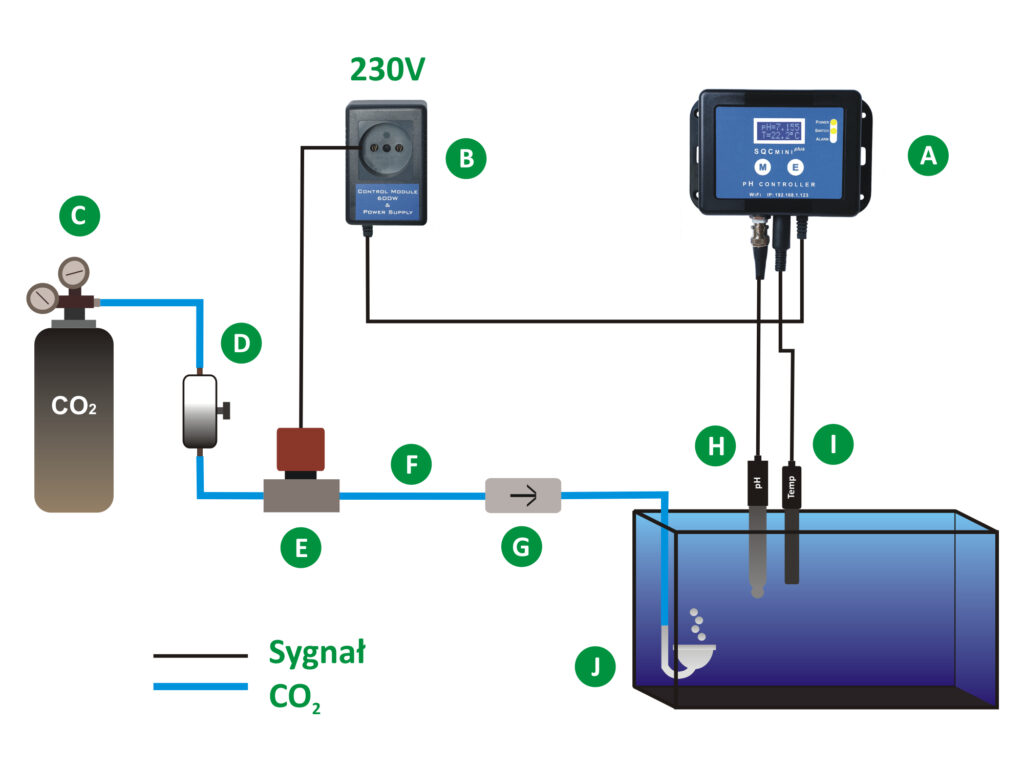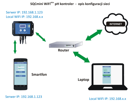 SQCmini WiFi plus pH kontroler – schemat sieci
