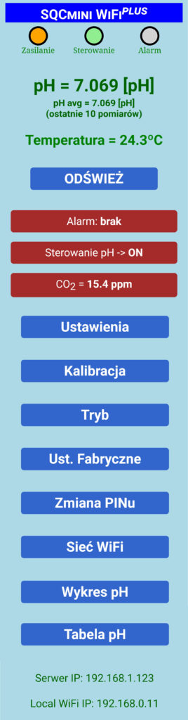 Serwer IP: 192.168.1.123 – stały adres serwera wbudowanego w kontroler pH.
